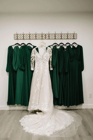 Our groom suite is a 16x16 room, heat and air, barber chair for the guys to get ready for their big day, as well as 5 studio chairs along our tile counter (extra chairs if needed), sofa along with a cow print chair